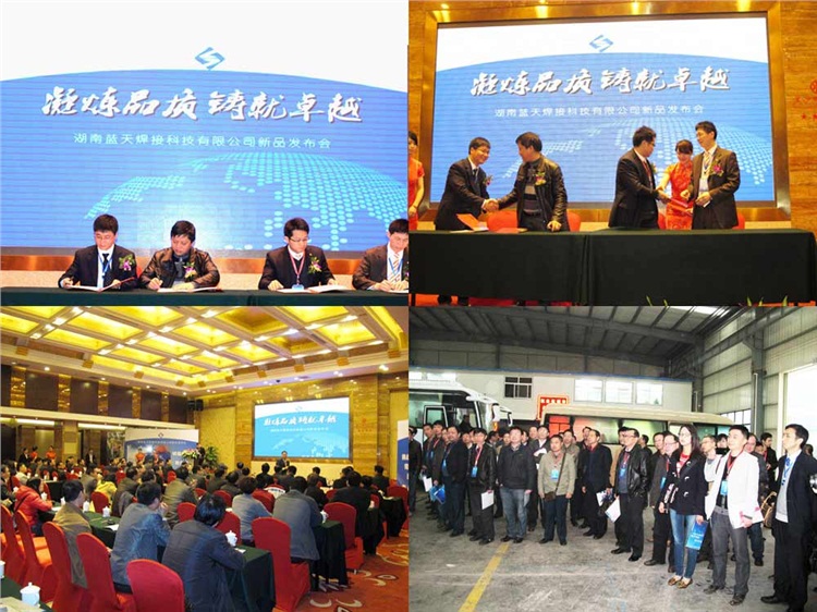 2013年3月17日上午,湖南藍天焊接科技有限公司在長沙星沙華天大酒店舉行為“機器人工作站”新品發布會。藍天焊接科技公司董事長張勇、總經理楊友貴、常務副總經理黃海波、副總經理陳琦、技術總監鮑賢捷出席了發布會,國家級長沙經開區管委會、長沙市經信委工業產業促進局相關領導,國防科技大學、中南大學、長沙理工大學等高校的教授,中聯重科混凝土機械公司、工程起重機機械公司、建筑起重機械公司、環衛機械公司、三一重工泵送事業部、三一起重機公司、安徽星馬、福田重工、中立工程機械、湖機國際機床、中聯恒通機械等企事業單位、科研院校、專業媒體共計110多人參加了此次發布會。