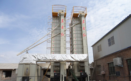 2臺東方紅5H-15循環式糧食烘干機正在進行烘干作業